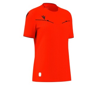 Schiedsrichtertrikot mit vollständiger Fertigung aus Eco Fabric, zu 100 % aus recyceltem PET. Der Kragen hat einen Rundhalsausschnitt mit einem Einsatz vorne und einer gestrickten Rückseite. Unter den Ärmeln und an der Rückseite des Kragens befinden sich Mesh-Einsätze, die für Atmungsaktivität sorgen. Das Logo Macron Hero ist aus Silikon gefertigt. Die Vorderseite und die Ärmel sind mit einer geprägten Textur versehen und es gibt zwei ergonomisch geschnittene Taschen mit Klettverschluss. In 4 Farbvarianten erhältlich.