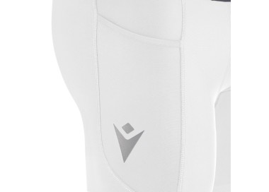 Technische Kompressions-Undershorts mit Tasche auf der rechten Seite. Das besondere komprimierende technische Gewebe Skintech aus den 2 Garnen Polyester und Spandex garantiert einen perfekten Kontakt am Körper und Kompression, sodass die sportliche Leistungsfähigkeit zusätzlich gesteigert werden kann. Ein reflektierendes Macron Hero Symbol ist auf der rechten Seite erkennbar.