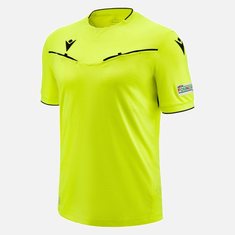 OFFIZIELLES UEFA-PRODUKT – SCHIEDSRICHTER MACRON TRIKOT MATCH DAY GELB SS - FUSSBALL MACRON M21 100% POLYESTER ANMERKUNGEN: -