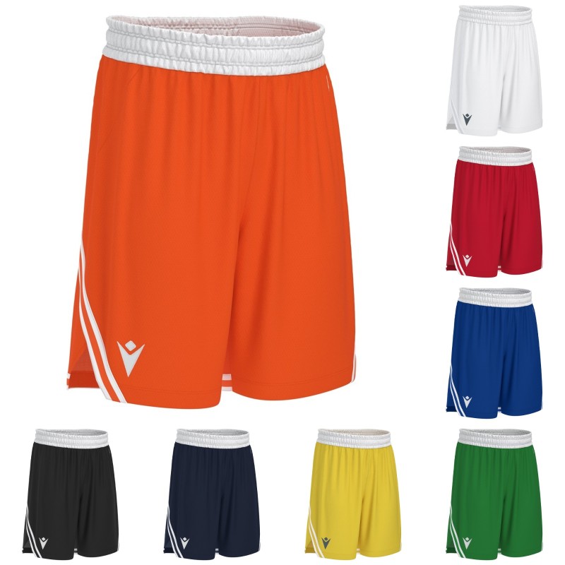 Reversible match day shorts made in Doublefiber Light two-tone mono-material fabric. Complete with a waistband with a flat drawstring and bottom opening with trim. The Macron Hero logo is printed on on front. Available in 5 colour versions.