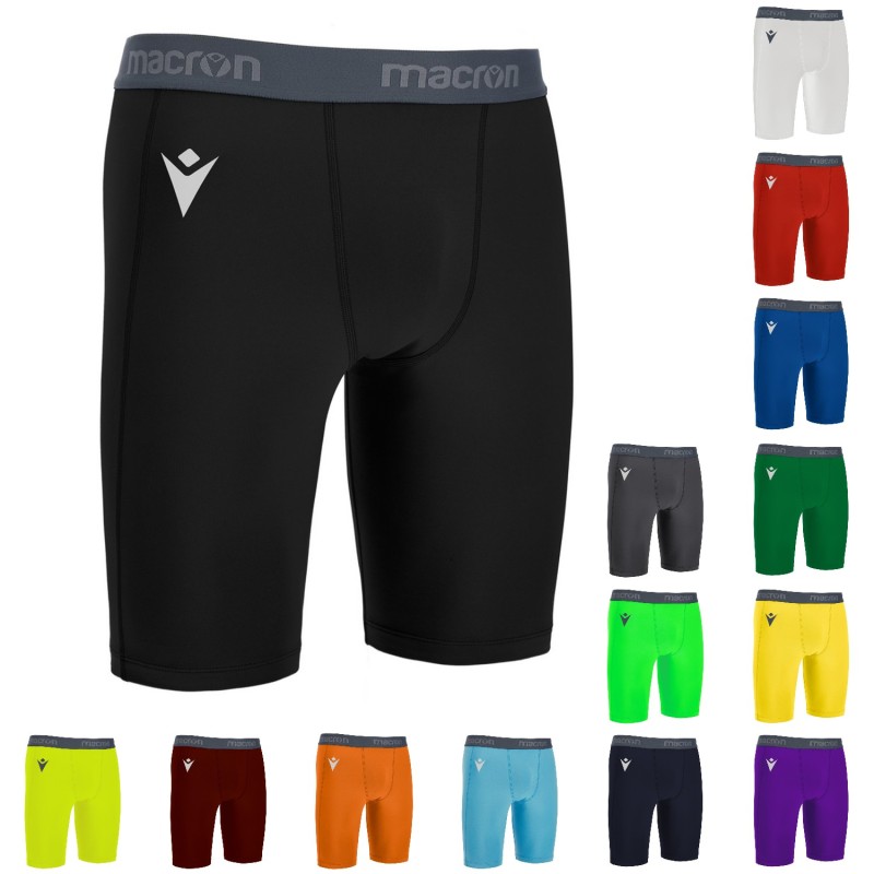 Compression technical undershorts with a right side pocket. The special Skintech compression technical fabric made from a blend of 2 Polyester and Spandex yarns guarantees perfect fit and compression for superb sports performance. Reflective Macron Hero logo on the right.