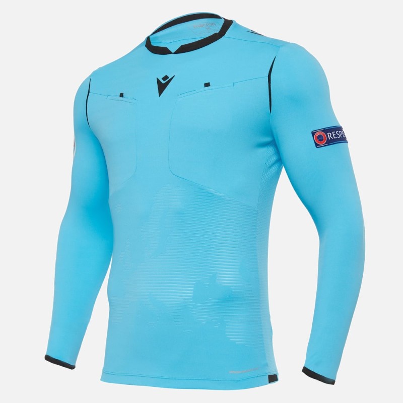 PRODUCTO OFICIAL UEFA - ÁRBITROMACRONCAMISETA MATCH DAY AZUL CLARO LS - FÚTBOL MACRON M21100% POLYESTERNOTAS: -