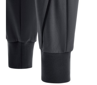 Pantalón de representación para mujer en tejido Confortex con banda con cordón plano. Grandes bolsillos laterales ribeteados con cremallera. Los bajos de la pernera tienen un ribete tono sobre tono con bajos de punto. Disponible en 3 variantes de color.
