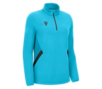Sudadera de entrenamiento en tejido Polydry. Con cremallera 1/4 de nailon en el cuello, con cursor autoblocante y protección cuello. Tiene aplicaciones de malla Micromesh en hombros y laterales para favorecer la transpirabilidad. El bajo tiene un cordón para el ajuste y mejorar la adherencia y la comodidad al moverse.