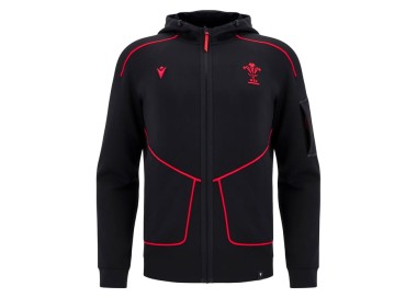 RUGBY PAYS DE GALLES – SWEAT CAPUCHE TRAVEL TECH BLK - MACRON - Saison 2025/26