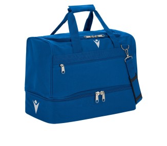 Borsa con ampio scomparto centrale che si apre a bauletto per sfruttare tutto lo spazio a disposizione. Dotata di un'ampia tasca frontale con chiusura a zip e di un fondo rigido utile per contenere le scarpe. Manici con chiusura a velcro e tracolla per il trasporto. Disponibile nella versione large e medium.